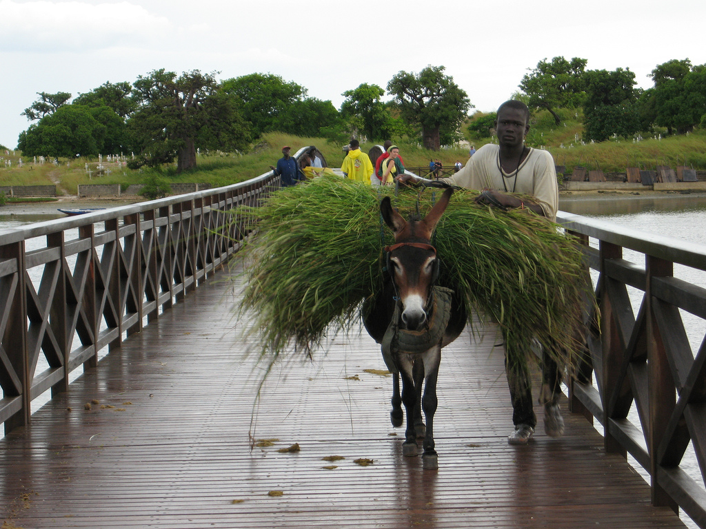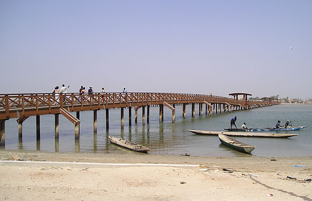 Traversée du célèbre pont en bois menant à l’île de Fadiouth
